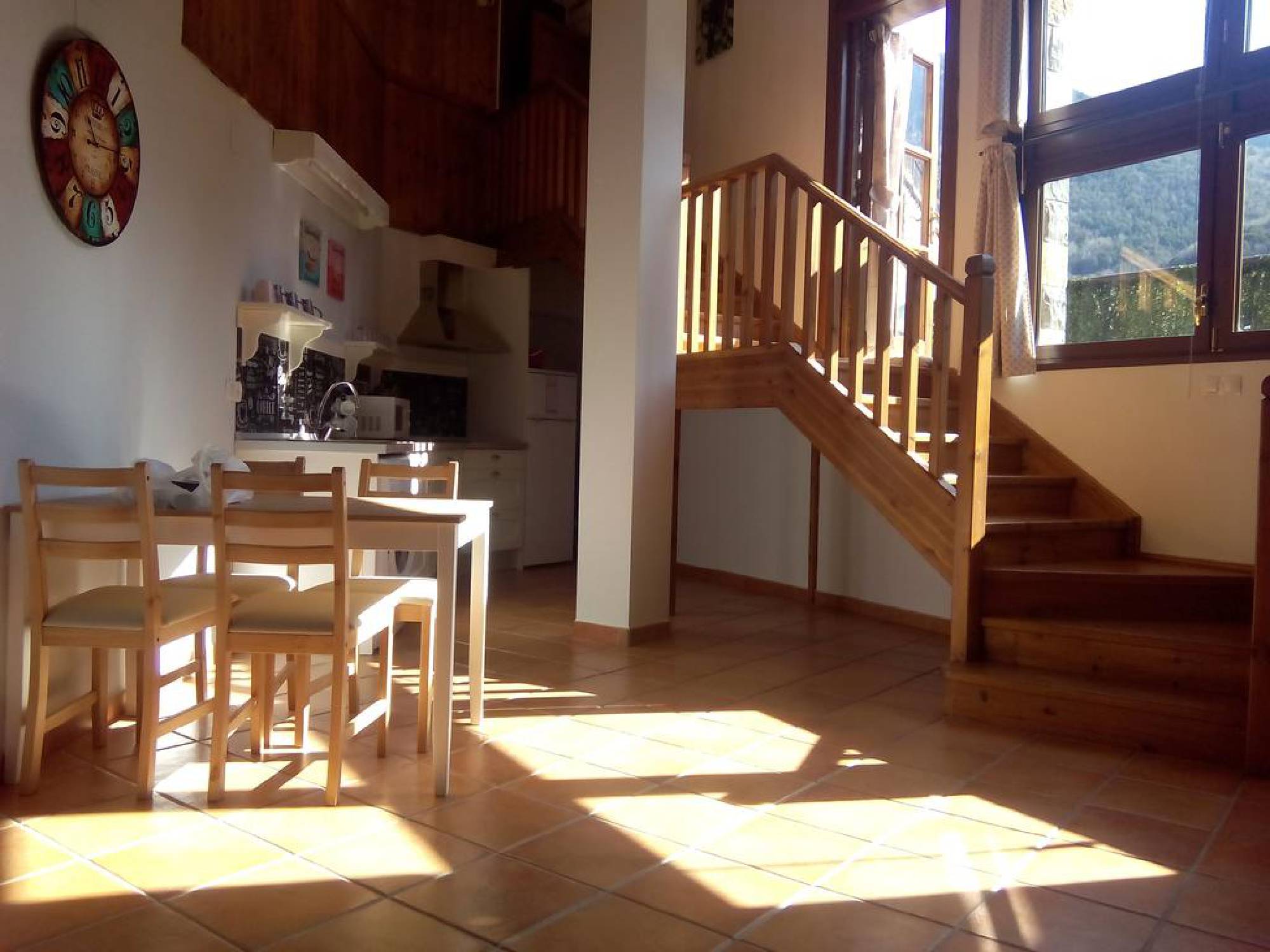 Estudio en el centro de Torla - Ordesa con unas vistas increibles mucha luz y totalmente equipado. Decorada com estilo de montaña con techos de madera, colores neutros y con amplios ventanales, ideal para parejas 2 personas.