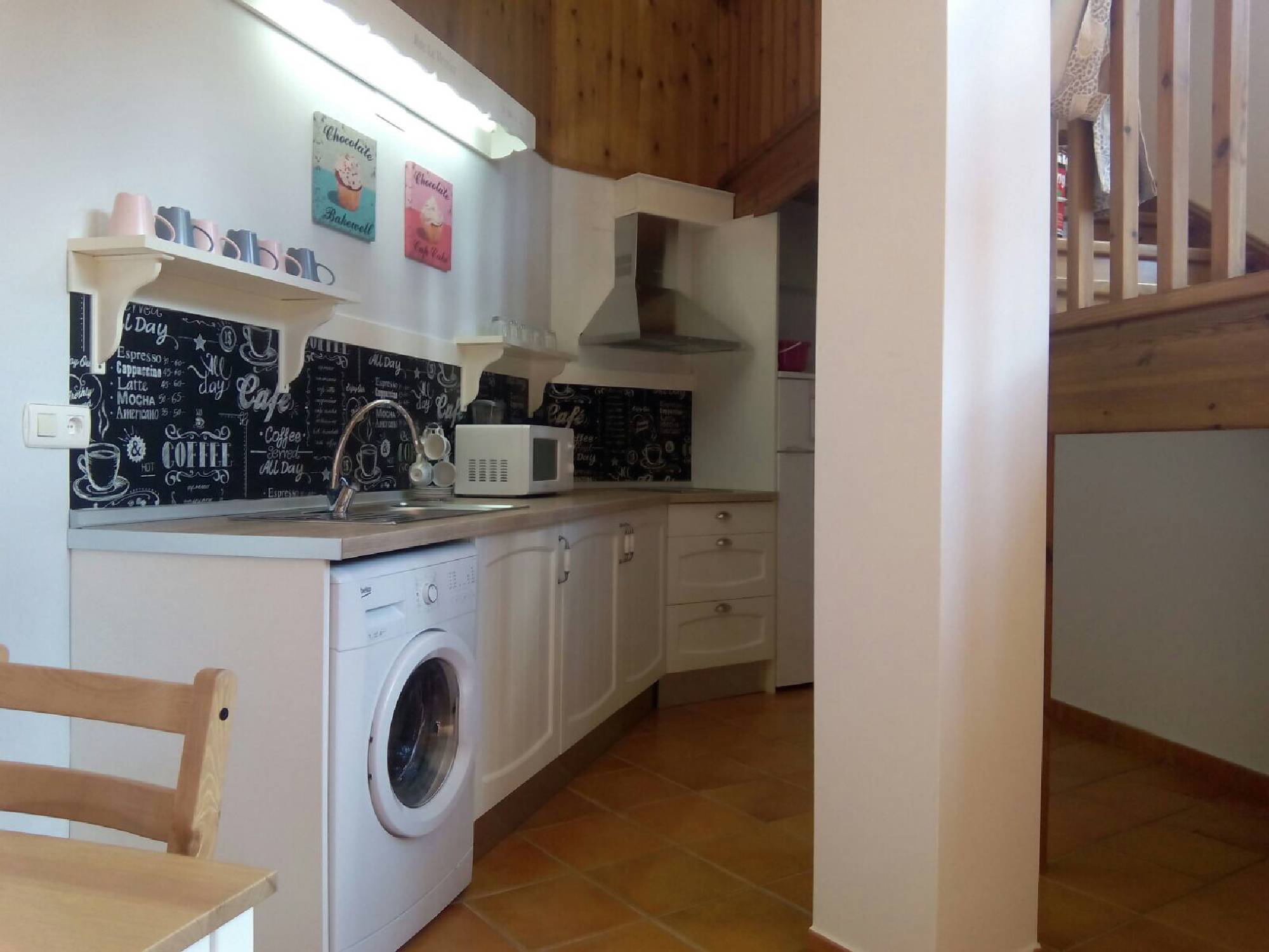 -Cocina completamente equipada, (Lavadora, vitrocerámica, frigorífico, microondas, pequeños electrodomésticos).