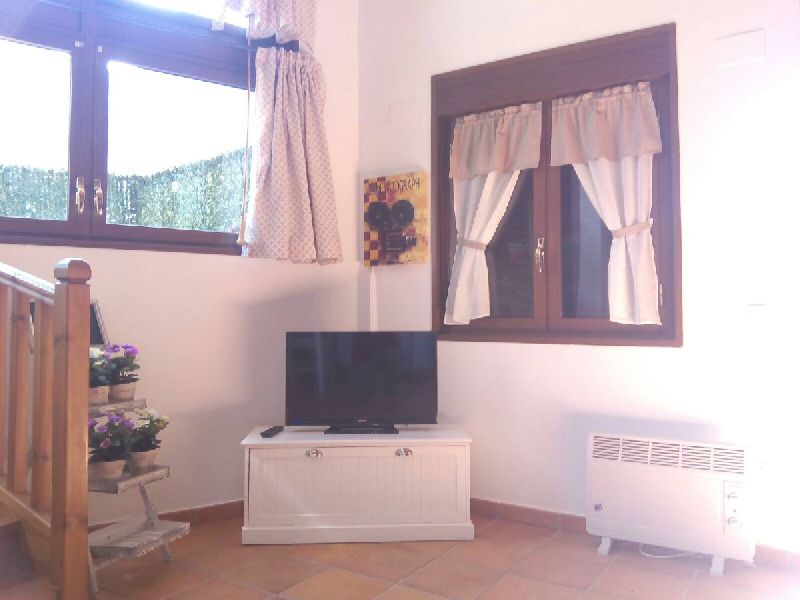 -Amplio salón comedor con televisión y grandes cristaleras.